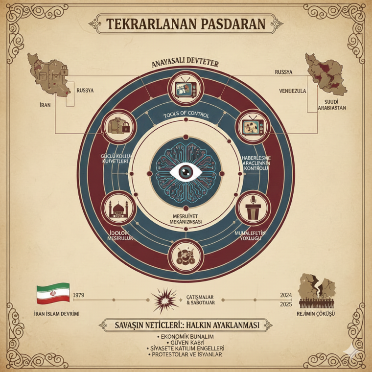 TEKRARLANAN PASDARAN Günümüzde anayasası olmakla beraber anayasal temellere bağlı kalınmayan ve hukukun keyfileştirilip, hukuku sadece alt tabakayı denetleyen bir mekanizma…